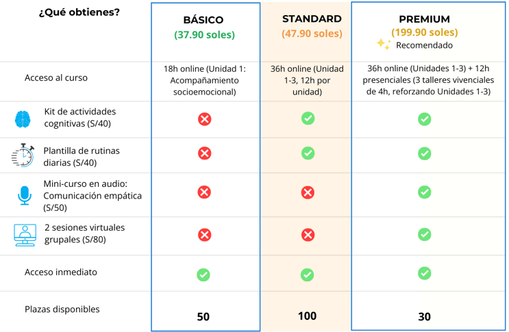 Cada plan te brinda herramientas prácticas para mejorar el cuidado que das.